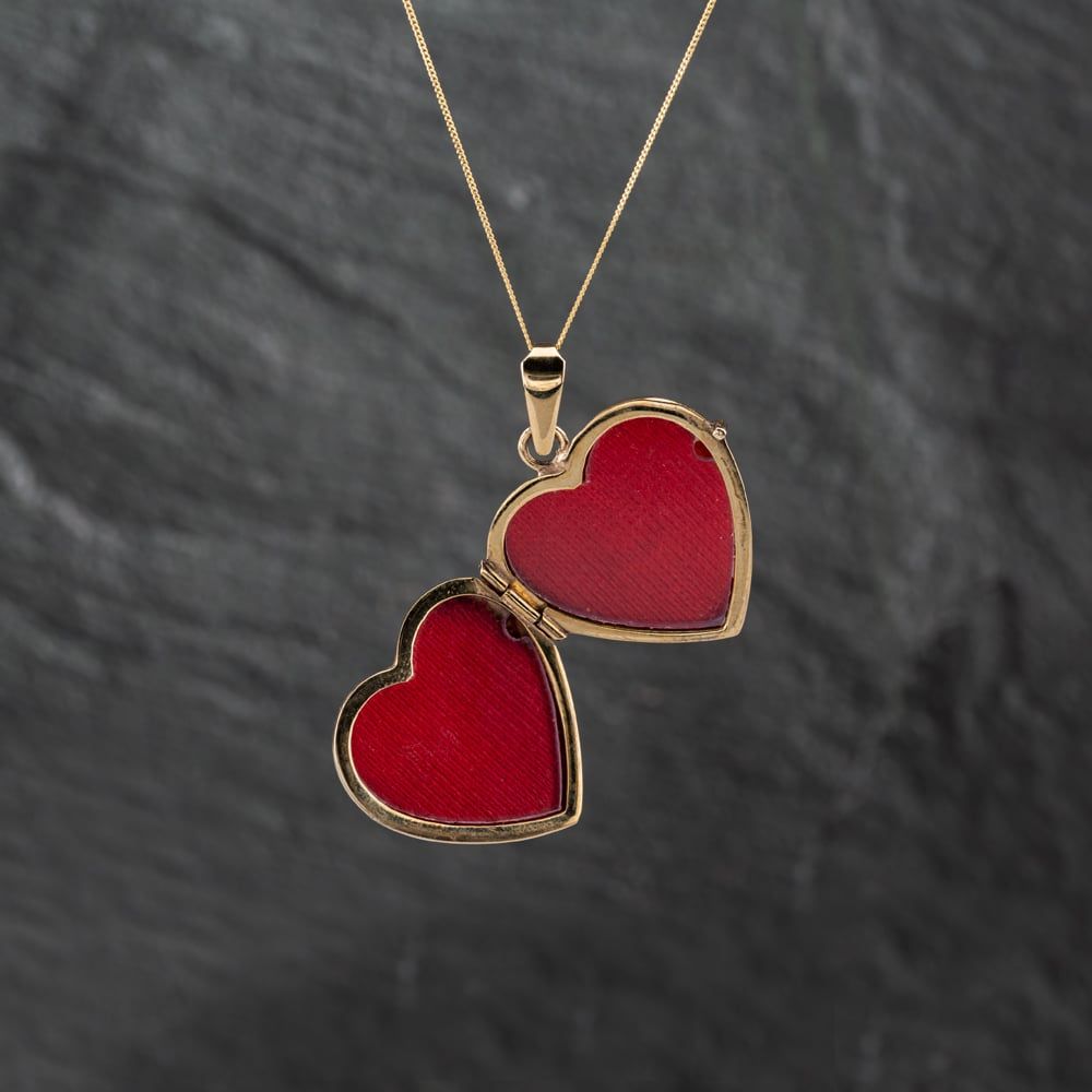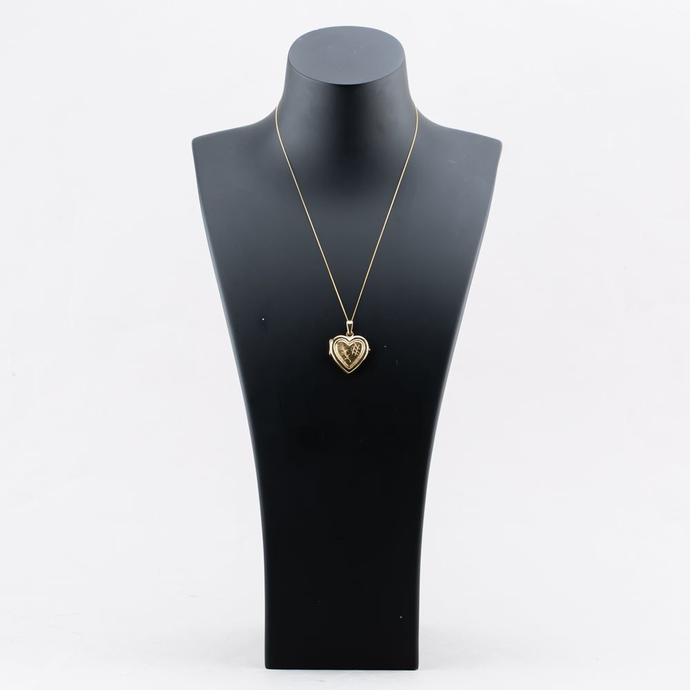 9ct Yellow Gold Heart Engraved Locket Pendant & 18 Inch Curb Chain