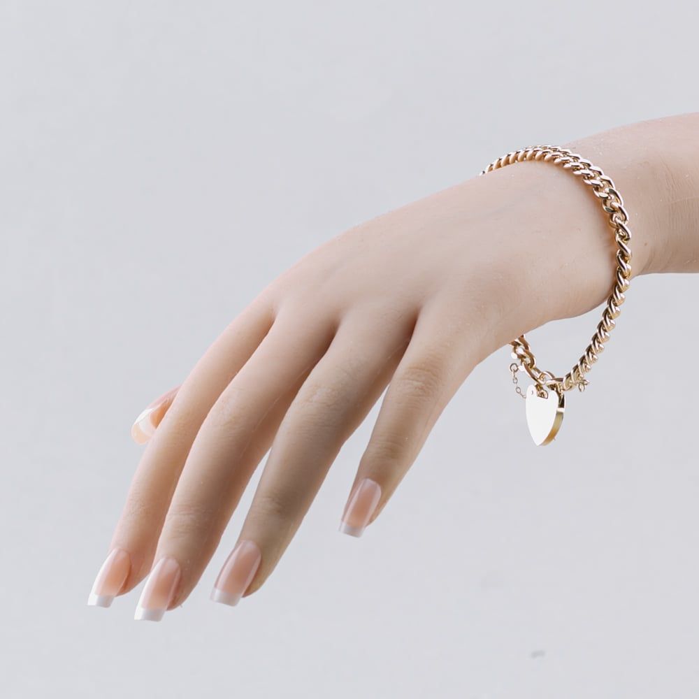 9ct Yellow Gold Heart Padlock 7 Inch Curb Chain Bracelet