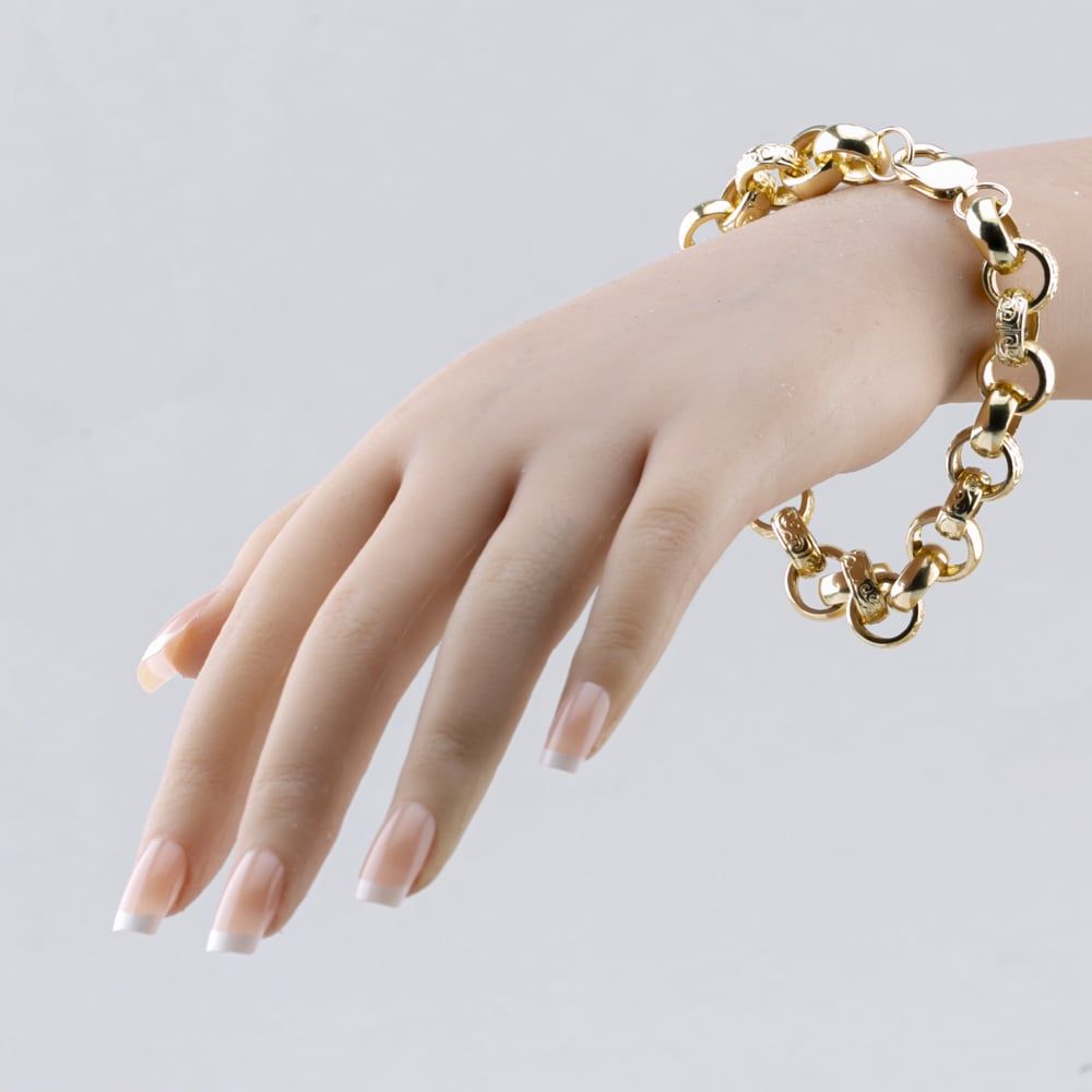 9ct Yellow Gold Heavy Hula Hoop Engraved Links 8.5 Inch Belcher Chain Bracelet