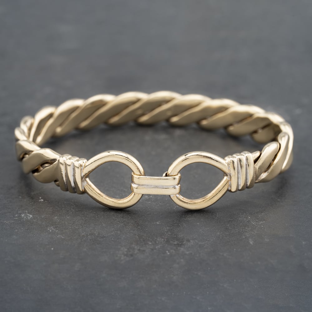 9ct Yellow Gold Hook Over Loop Heavy Twisted Standard Torque Bangle
