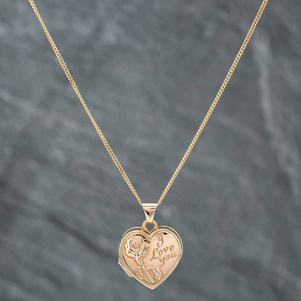 9ct Yellow Gold I Love You Heart Locket Pendant & 16 Inch Curb Chain