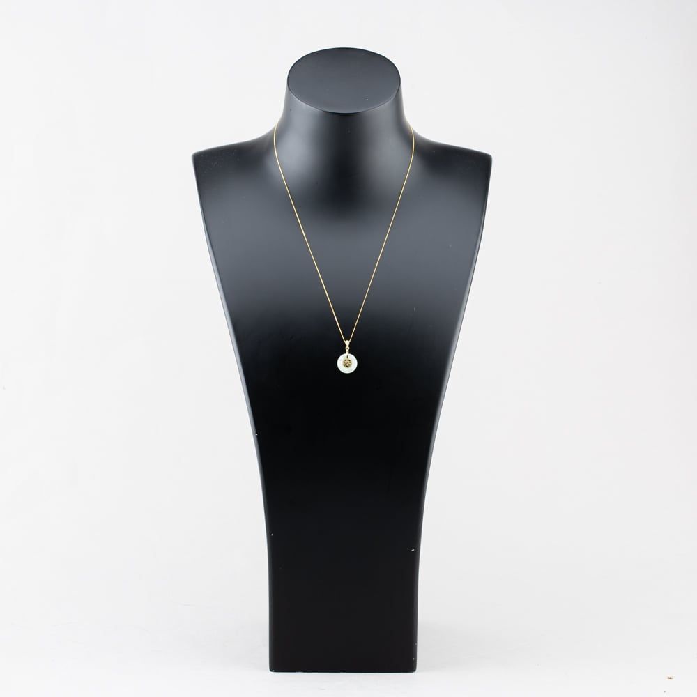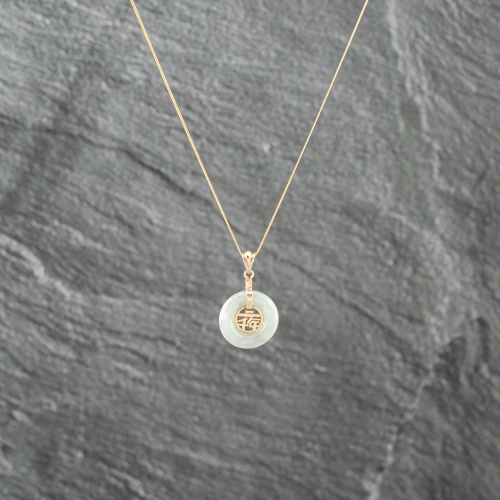 Second Hand 9ct Yellow Gold Jade Circular Chinese Symbol Pendant & 18 Inch Curb Chain 41142942 Second Hand 9ct Yellow Gold Jade Circular Chinese Symbol Pendant & 18 Inch Curb Chain 41142942
