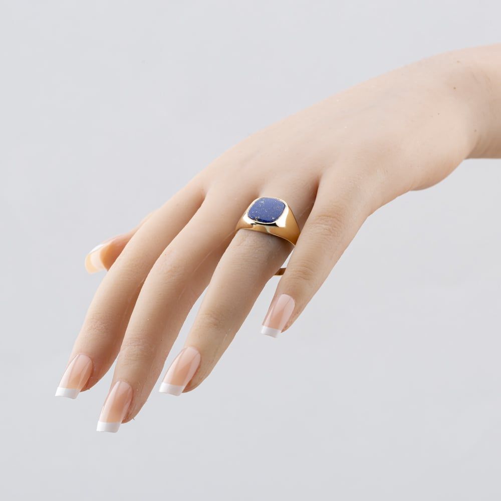 9ct Yellow Gold Lapis Lazuli Cushion Signet Ring