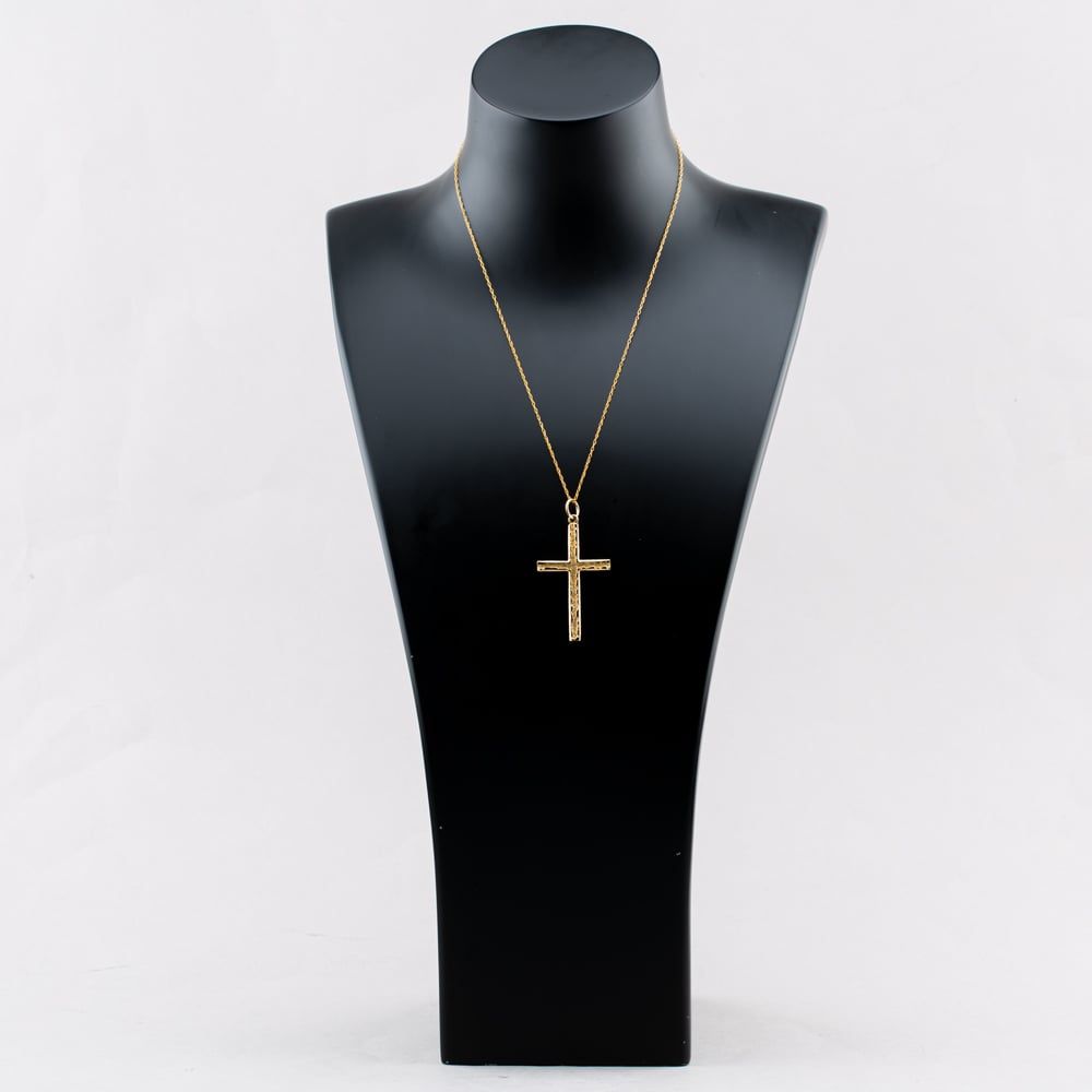 9ct Yellow Gold Large Bark Effect Pattern Cross Pendant & 18 Inch Prince Of Wales Chain