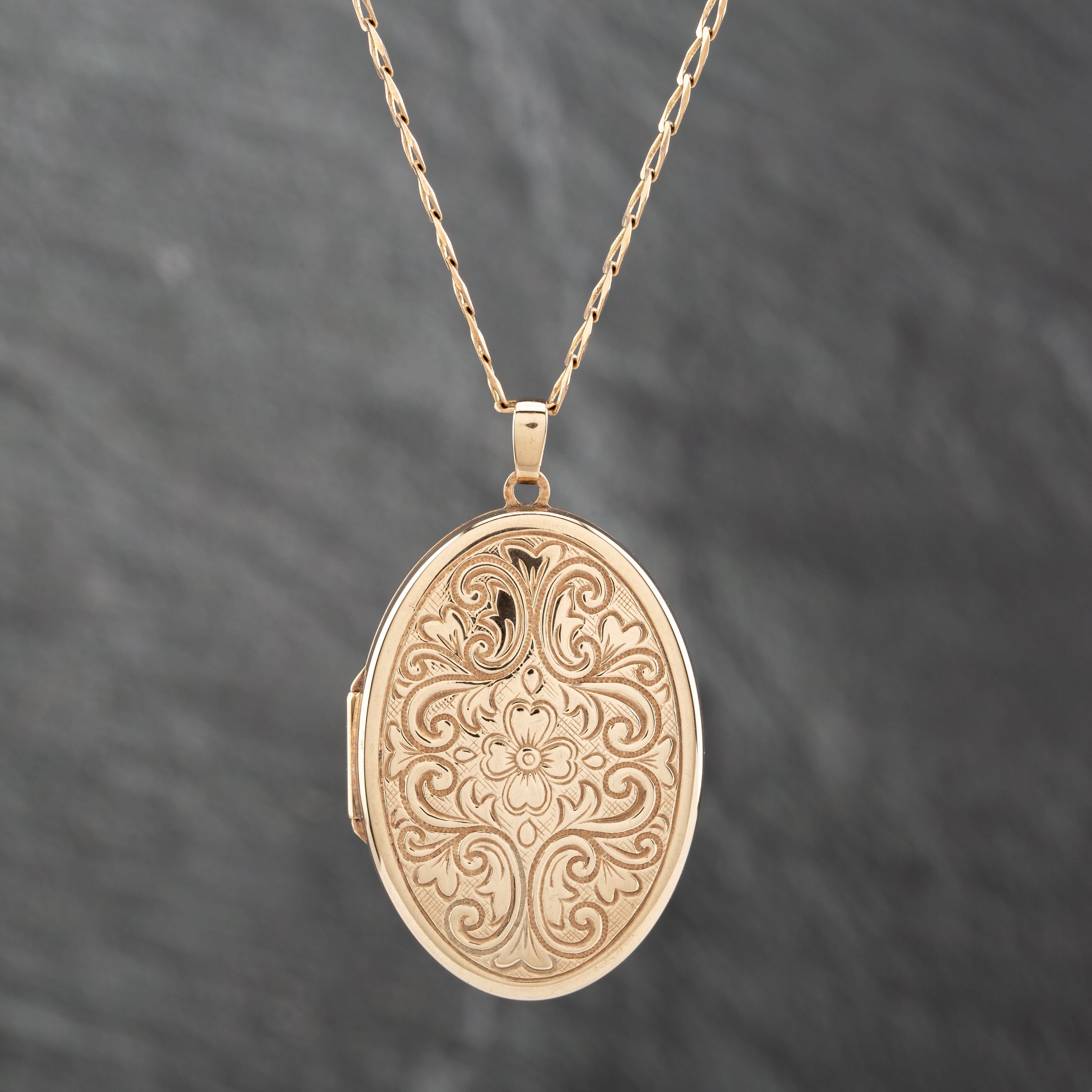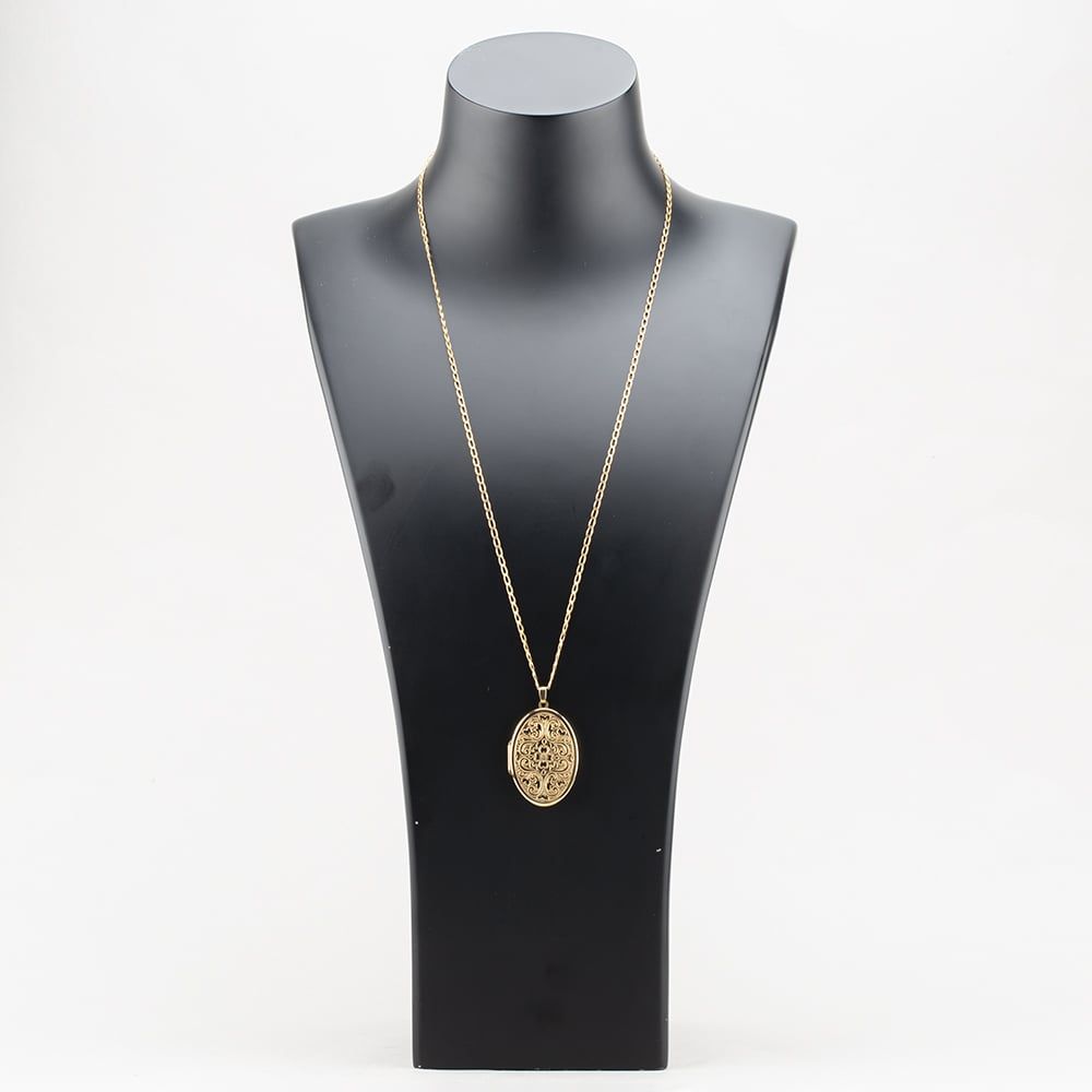 9ct Yellow Gold Large Engraved Oval Pendant & 24 Inch Curb Chain