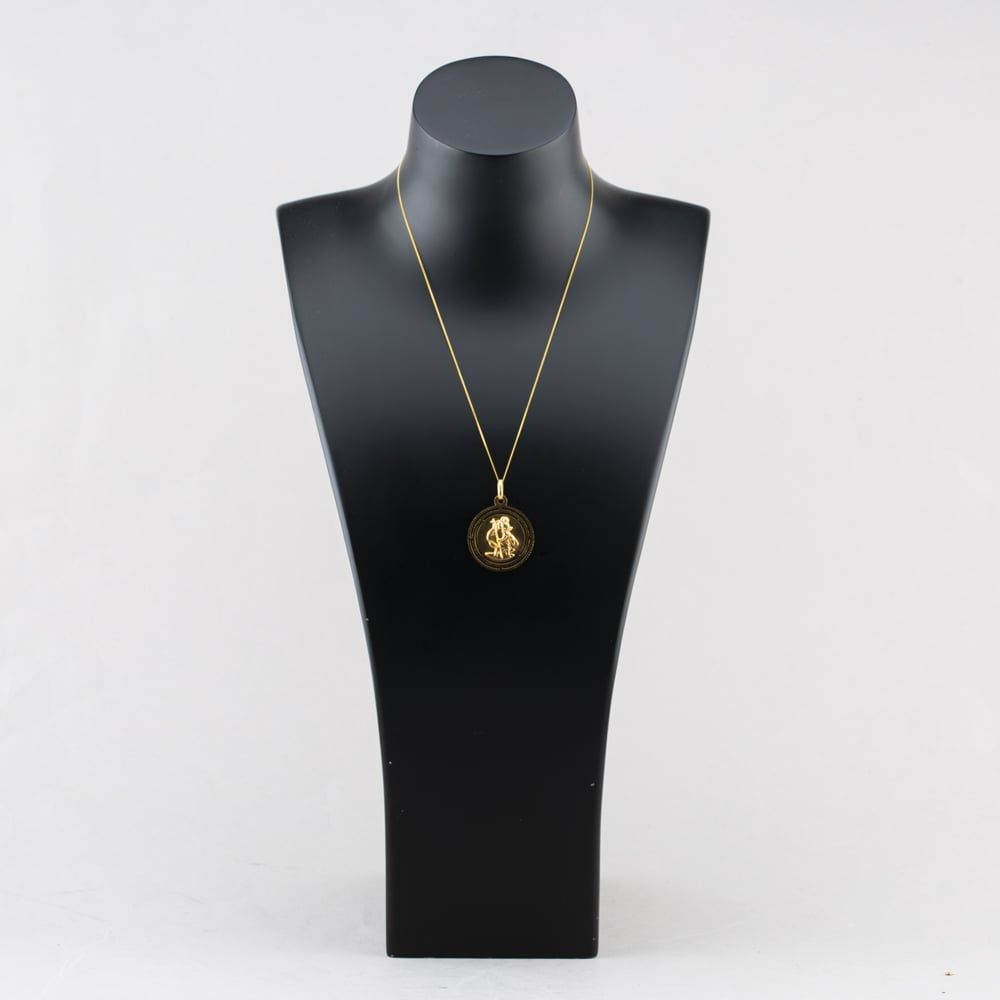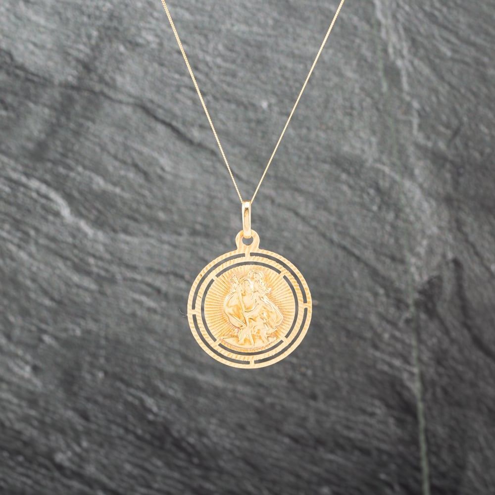 Second Hand 9ct Yellow Gold Large Round St Christopher Pendant & 18 Inch Curb Chain 41143019 Second Hand 9ct Yellow Gold Large Round St Christopher Pendant & 18 Inch Curb Chain 41143019