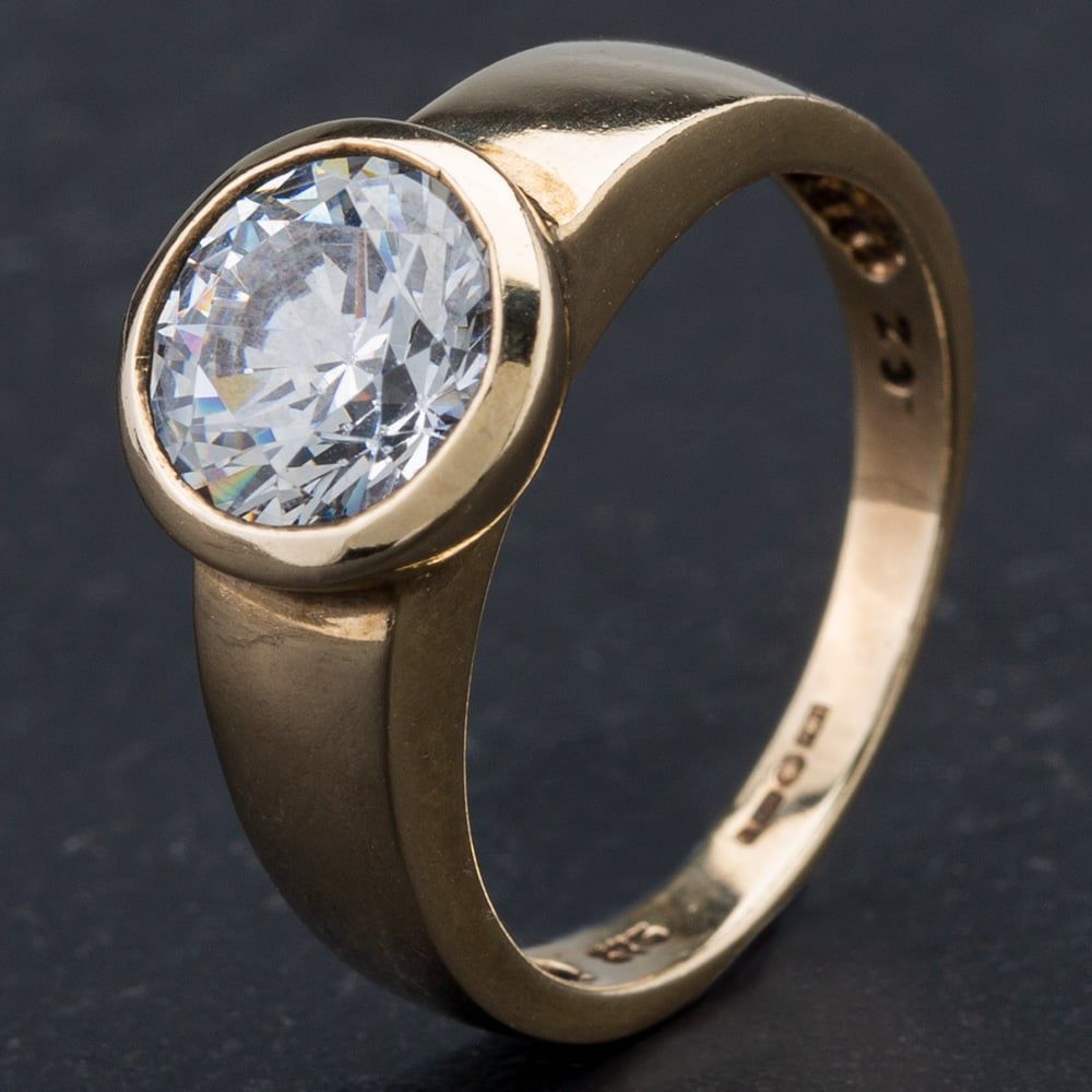 9ct Yellow Gold Large Cubic Zirconia In Rub Over Setting