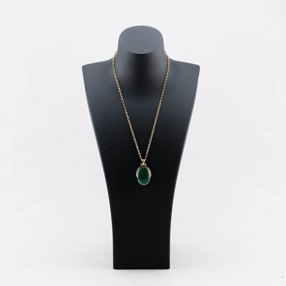 9ct Yellow Gold Malachite & Mother Of Pearl Rotating Fob Pendant & 20 Inch Belcher Chain