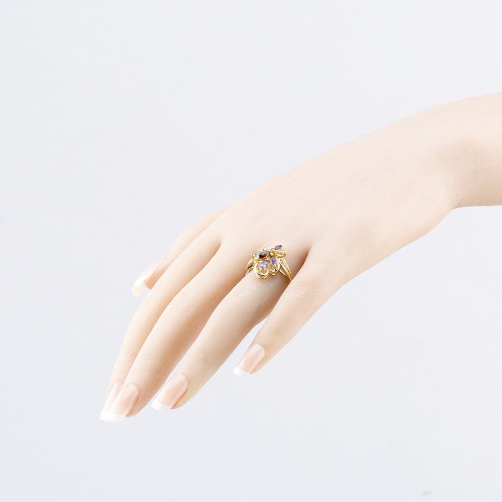 Second Hand 9ct Yellow Gold Multi Stone & 0.03ct Diamond Dress Ring 41383724 Second Hand 9ct Yellow Gold Multi Stone & 0.03ct Diamond Dress Ring 41383724