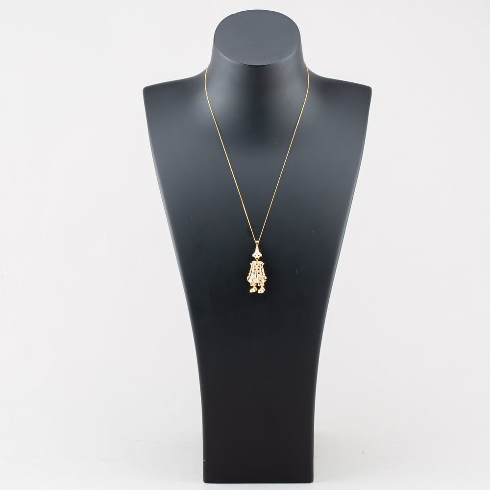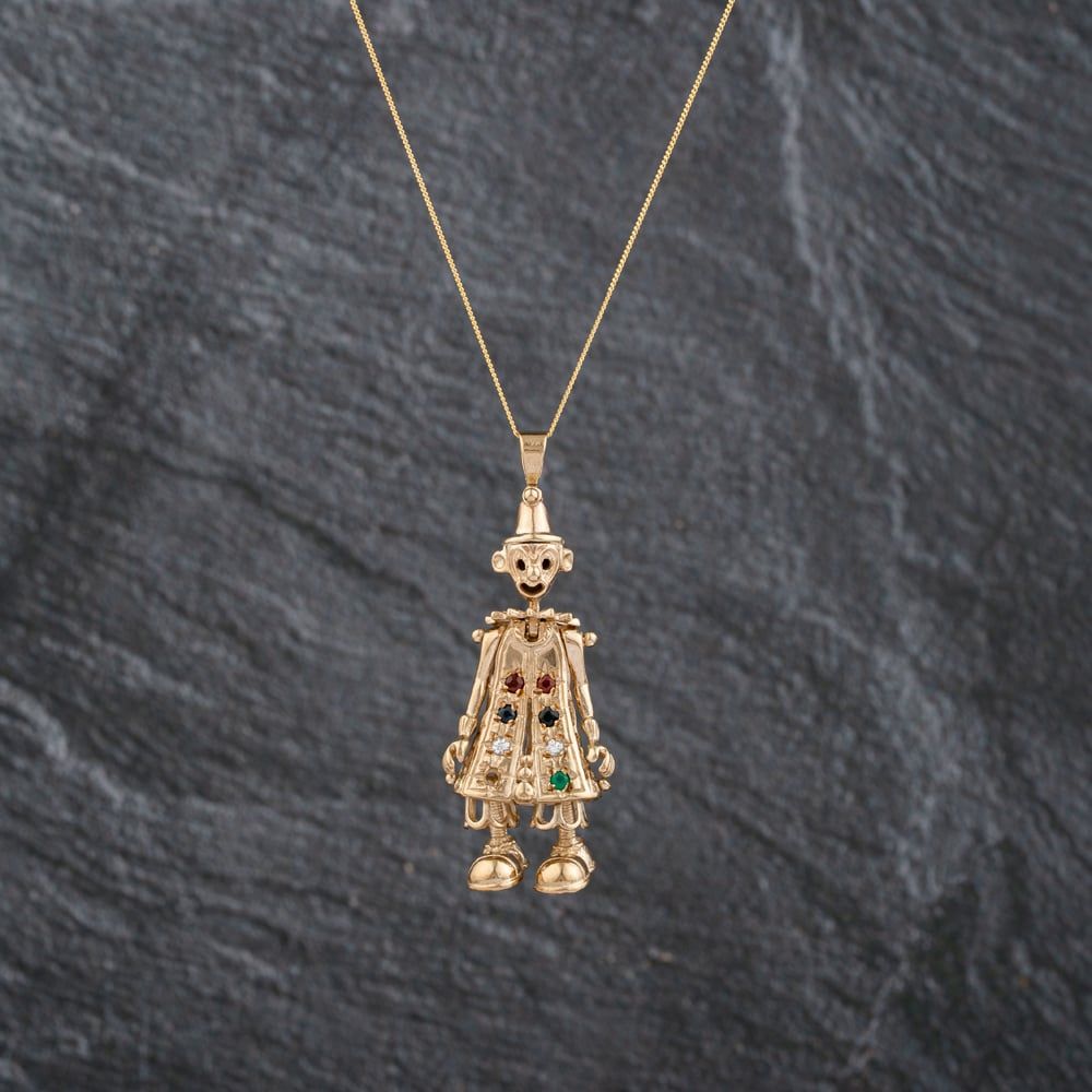 <a href="https://www.thbaker.co.uk/stores/"><b>Click here to find your <font color="6d1a42">nearest store</font></b></a>Second Handhttps://www.thbaker.co.uk/media/catalog/product/4/1/41-14-3089_model_1.jpgadd-to-cartcondition:YesYes41143089Second Hand41143089LadiesT H Baker Packaging12 Month WarrantyNoPendant with Chain5.9g18inchPendantCurb9ct Yellow GoldMulti-ColouredMulti StoneMulti-Coloured{"name":"v12_finance","text":"Or from \u00a312 per month","imageUrl":"https:\/\/www.thbaker.co.uk\/media\/nosto\/v12-finance.png"}Second Hand 9ct Yellow Gold Multi Stone Clown Pendant & 18 Inch Curb Chain41-14-30892025-12-12 00:00:002026-03-12