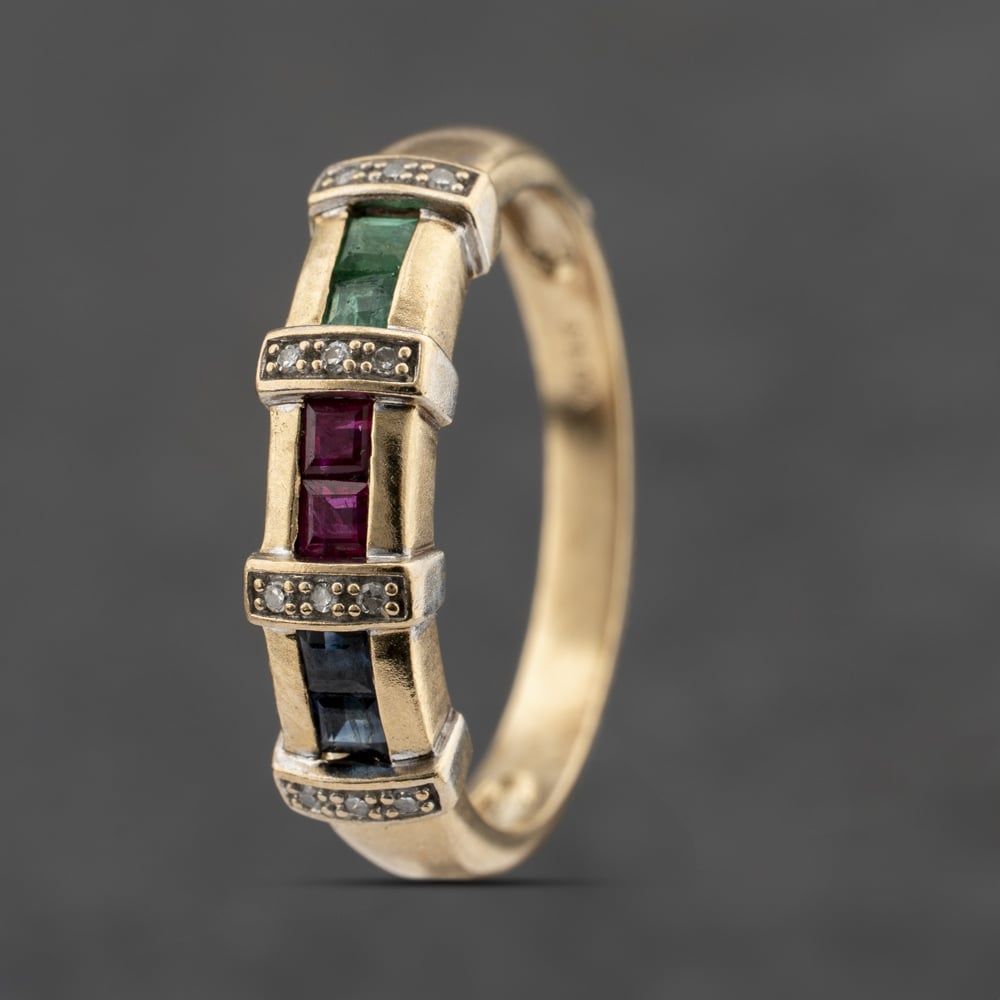 Second Hand 9ct Yellow Gold Multi Stone Dress Ring 41383483 Second Hand 9ct Yellow Gold Multi Stone Dress Ring 41383483