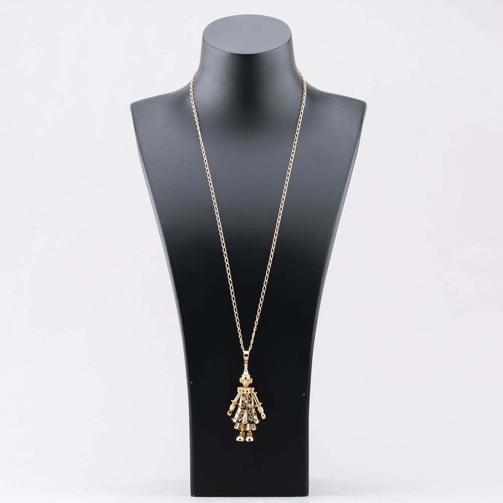 9ct Yellow Gold Multi Stone Large Clown Pendant & 26 Inch Curb Chain