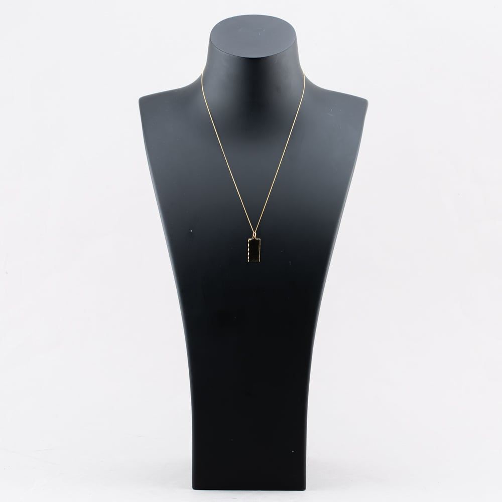 9ct Yellow Gold Oblong Bevelled Edge Pendant & 18 Inch Curb Chain