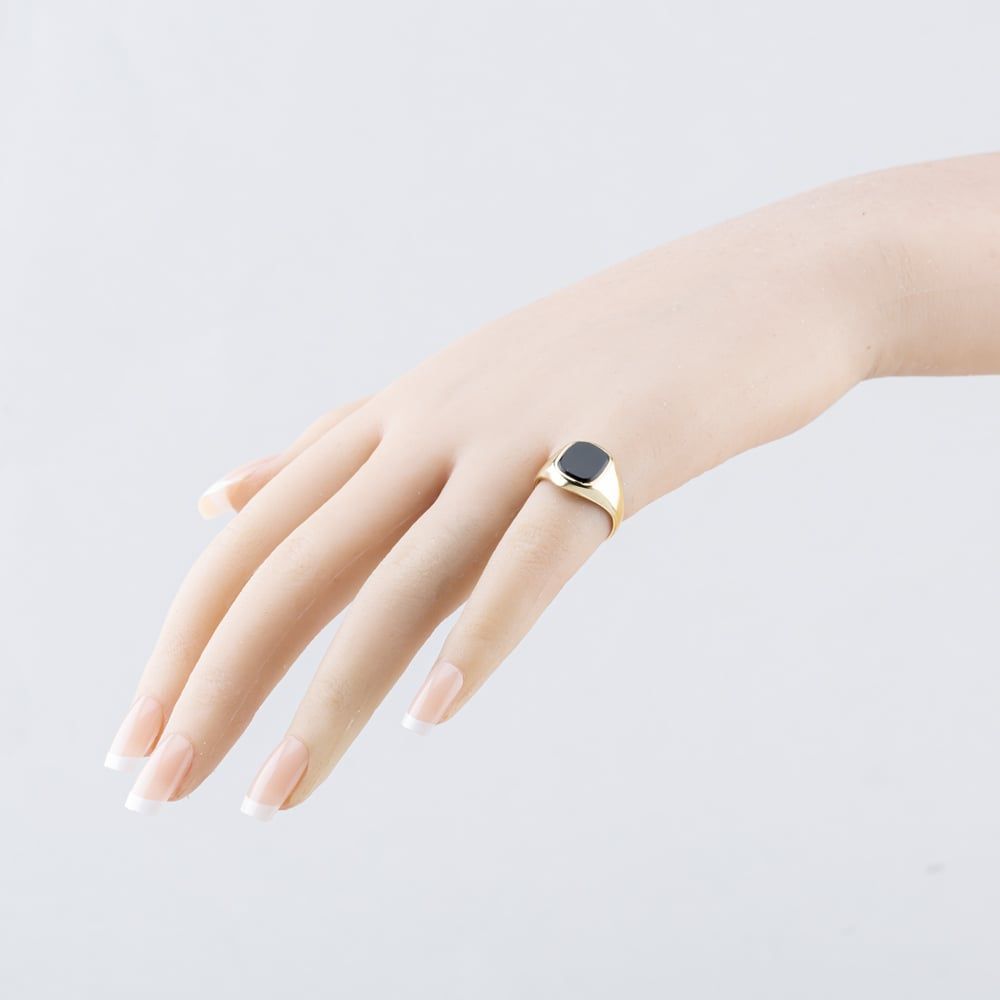 <a href="https://www.thbaker.co.uk/stores/"><b>Click here to find your <font color="6d1a42">nearest store</font></b></a>Second Handhttps://www.thbaker.co.uk/media/catalog/product/4/1/41-34-2257_model_1.jpgcondition:Yesdisc_no_stock:NoYesNo41342257Second Hand41342257MensT H Baker Packaging12 Month WarrantyNoRing2.9gMSignet9ct Yellow GoldBlackOnyxBlack{"name":"Klarna","text":"3 payments of \u00a398.33","imageUrl":"https:\/\/www.thbaker.co.uk\/media\/nosto\/klarna.png"}Second Hand 9ct Yellow Gold Onyx Cushion Signet Ring41-34-22572025-12-06 00:00:000[{"path":"\/Jewellery","url":"\/jewellery\/"},{"path":"\/Jewellery\/Rings","url":"\/rings\/"},{"path":"\/Jewellery\/Rings\/Gold Rings","url":"\/gold-rings\/"},{"path":"\/Seasonal\/Christmas Collection","url":"\/christmas-collection\/"},{"path":"\/Jewellery\/Rings\/Gemstone Rings","url":"\/gemstone-rings\/"},{"path":"\/Jewellery\/Rings\/Mens Rings","url":"\/mens-rings\/"},{"path":"\/Seasonal\/Christmas Collection\/Gifts For Him","url":"\/christmas-gifts-for-him\/"},{"path":"\/Second Hand Collection","url":"\/second-hand\/"},{"path":"\/Second Hand Collection\/Second Hand Jewellery","url":"\/second-hand-jewellery\/"},{"path":"\/Second Hand Collection\/Second Hand Rings","url":"\/second-hand-rings\/"},{"path":"\/Jewellery\/Gold Jewellery","url":"\/gold-jewellery\/"},{"path":"\/Second Hand Collection\/Second Hand Jewellery\/Second Hand Yellow Gold","url":"\/second-hand-yellow-gold-jewellery\/"},{"path":"\/Second Hand Collection\/Second Hand Mens Jewellery","url":"\/second-hand-mens-collection\/"},{"path":"\/Jewellery\/Rings\/Signet Rings","url":"\/signet-rings\/"},{"path":"\/Second Hand Collection\/Second Hand Gemstones","url":"\/second-hand-gemstone-jewellery\/"},{"path":"\/Second Hand Collection\/Second Hand Rings\/Second Hand Gold Rings","url":"\/second-hand-gold-rings\/"},{"path":"\/Second Hand Collection\/Second Hand Rings\/Second Hand Yellow Gold Rings","url":"\/second-hand-yellow-gold-rings\/"},{"path":"\/Second Hand Collection\/Second Hand Rings\/Second Hand Signet Rings","url":"\/second-hand-signet-rings\/"},{"path":"\/Jewellery\/Gold Jewellery\/Yellow Gold Rings","url":"\/yellow-gold-rings\/"},{"path":"\/Jewellery\/Gold Jewellery\/Yellow Gold Rings\/Yellow Gold Signet Rings","url":"\/yellow-gold-signet-rings\/"},{"path":"\/Second Hand Collection\/Second Hand Gold","url":"\/second-hand-gold\/"},{"path":"\/Second Hand Collection\/Second Hand Jewellery\/Second Hand 9ct","url":"\/second-hand-9ct-jewellery\/"},{"path":"\/Second Hand Collection\/Second Hand Rings\/Second Hand Mens Rings","url":"\/second-hand-mens-rings\/"},{"path":"\/Seasonal\/Christmas Collection\/Pre Loved Christmas Gifts","url":"\/pre-loved-christmas-gifts\/"},{"path":"\/Free Gift","url":"\/free-gift\/"},{"path":"\/Second Hand Collection\/Second Hand Rings\/Second Hand Onyx Rings","url":"\/second-hand-onyx-rings\/"}]2025-12-06