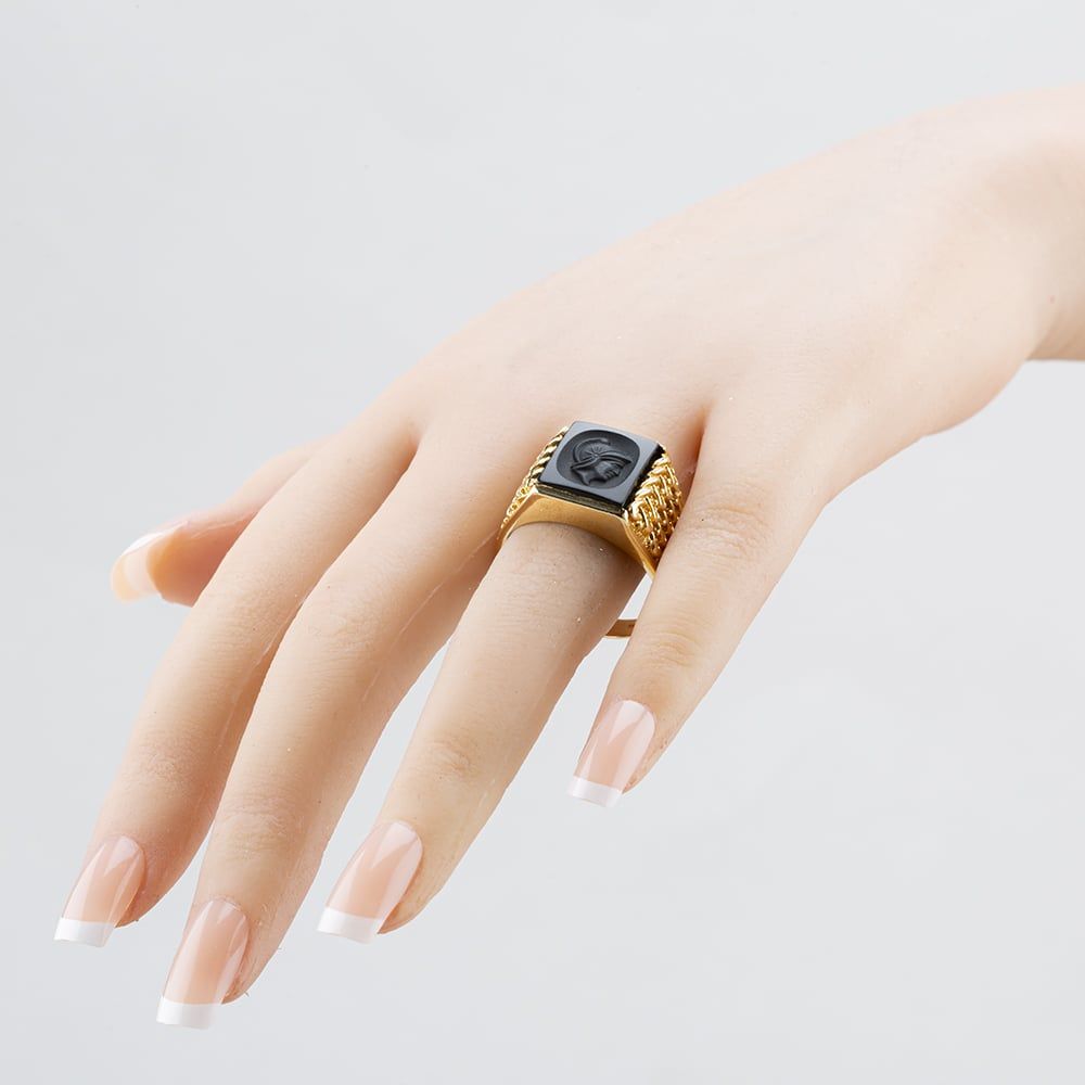 9ct Yellow Gold Onyx Oblong Roman Head Engraved Signet Ring