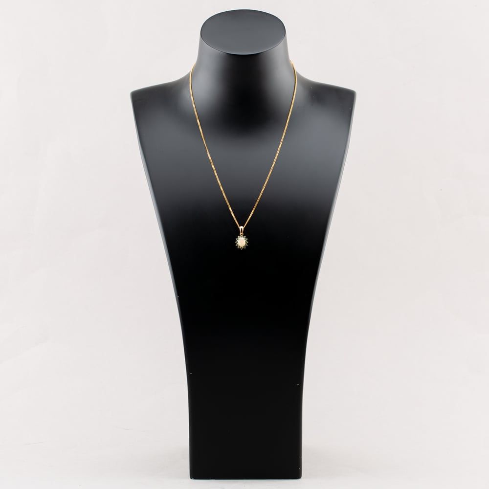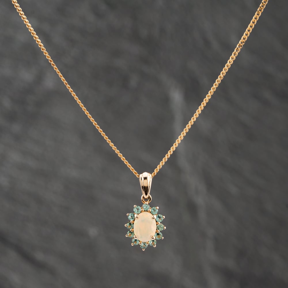 9ct Yellow Gold Opal & Apatite Oval Cluster Gemstone Pendant & 18 Inch Curb Chain