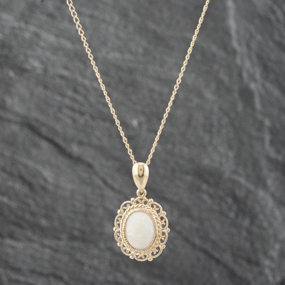 9ct Yellow Gold Opal Oval Pendant & 16 Inch Curb Chain