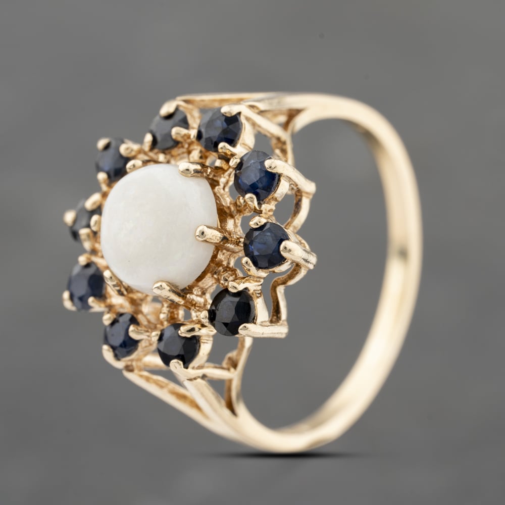 Second Hand 9ct Yellow Gold Opal & Sapphire Large Cluster Ring 41103659 Second Hand 9ct Yellow Gold Opal & Sapphire Large Cluster Ring 41103659
