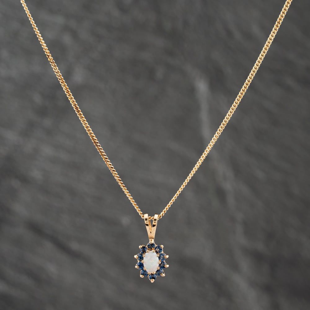 Second Hand 9ct Yellow Gold Opal & Sapphire Oval Cluster Gemstone Pendant & 18 Inch Curb Chain 41142635 Second Hand 9ct Yellow Gold Opal & Sapphire Oval Cluster Gemstone Pendant & 18 Inch Curb Chain 41142635