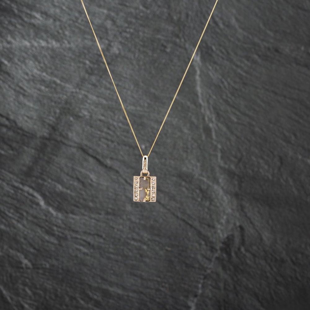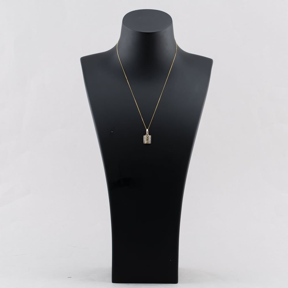Second Hand 9ct Yellow Gold Opaque Coloured Centre Stone Diamond Bar Pendant & 18 Inch Curb Chain 41142805 Second Hand 9ct Yellow Gold Opaque Coloured Centre Stone Diamond Bar Pendant & 18 Inch Curb Chain 41142805