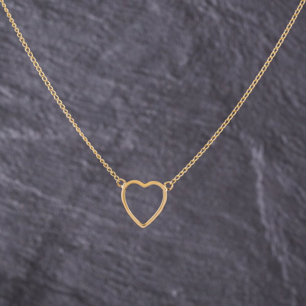 9ct Yellow Gold Open Heart Pendant & 14 Inch Curb Chain