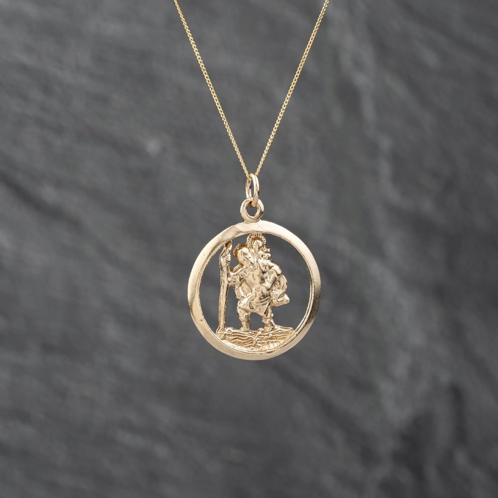 Second Hand 9ct Yellow Gold Open Work St Christopher Pendant & 18 Inch Curb Chain 41142843 Second Hand 9ct Yellow Gold Open Work St Christopher Pendant & 18 Inch Curb Chain 41142843
