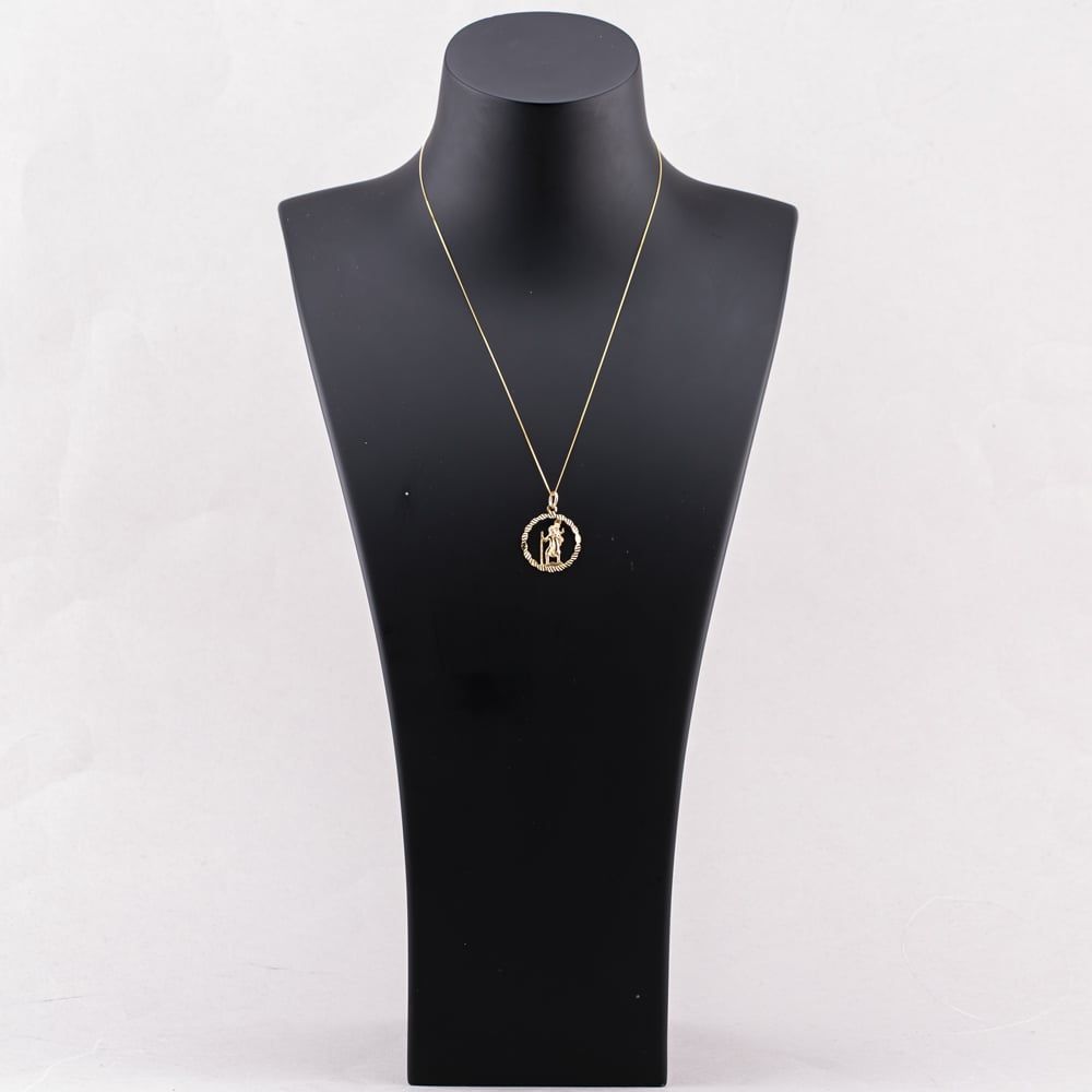 9ct Yellow Gold Openwork St Christopher Pendant & 18 Inch Curb Chain