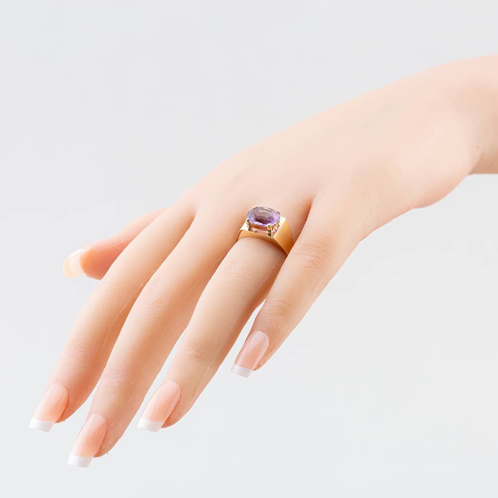9ct Yellow Gold Oval Cut Amethyst Single Stone Dress Ring