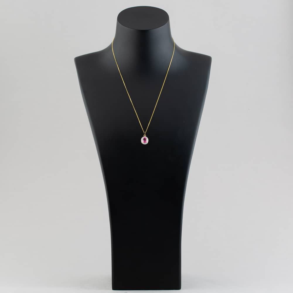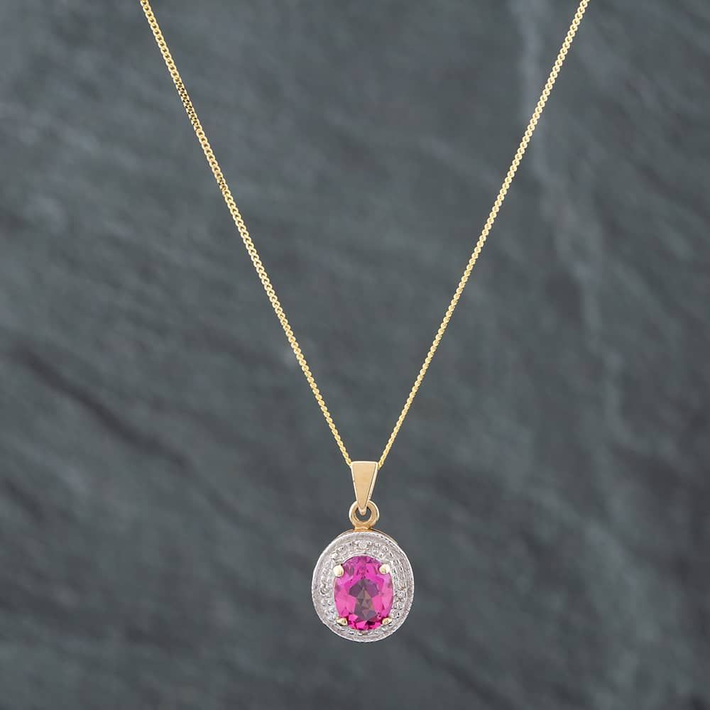 9ct Yellow Gold Oval Cut Pink Topaz Pendant & 18 Inch Curb Chain
