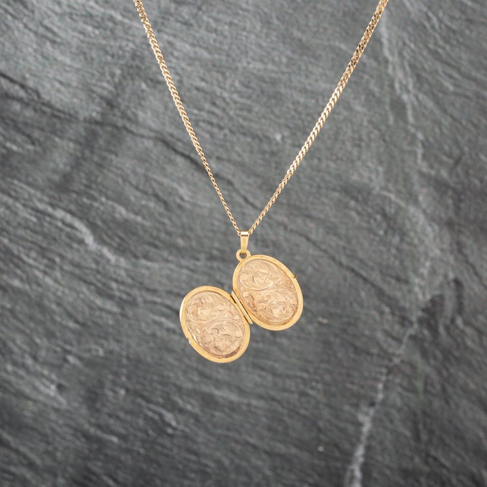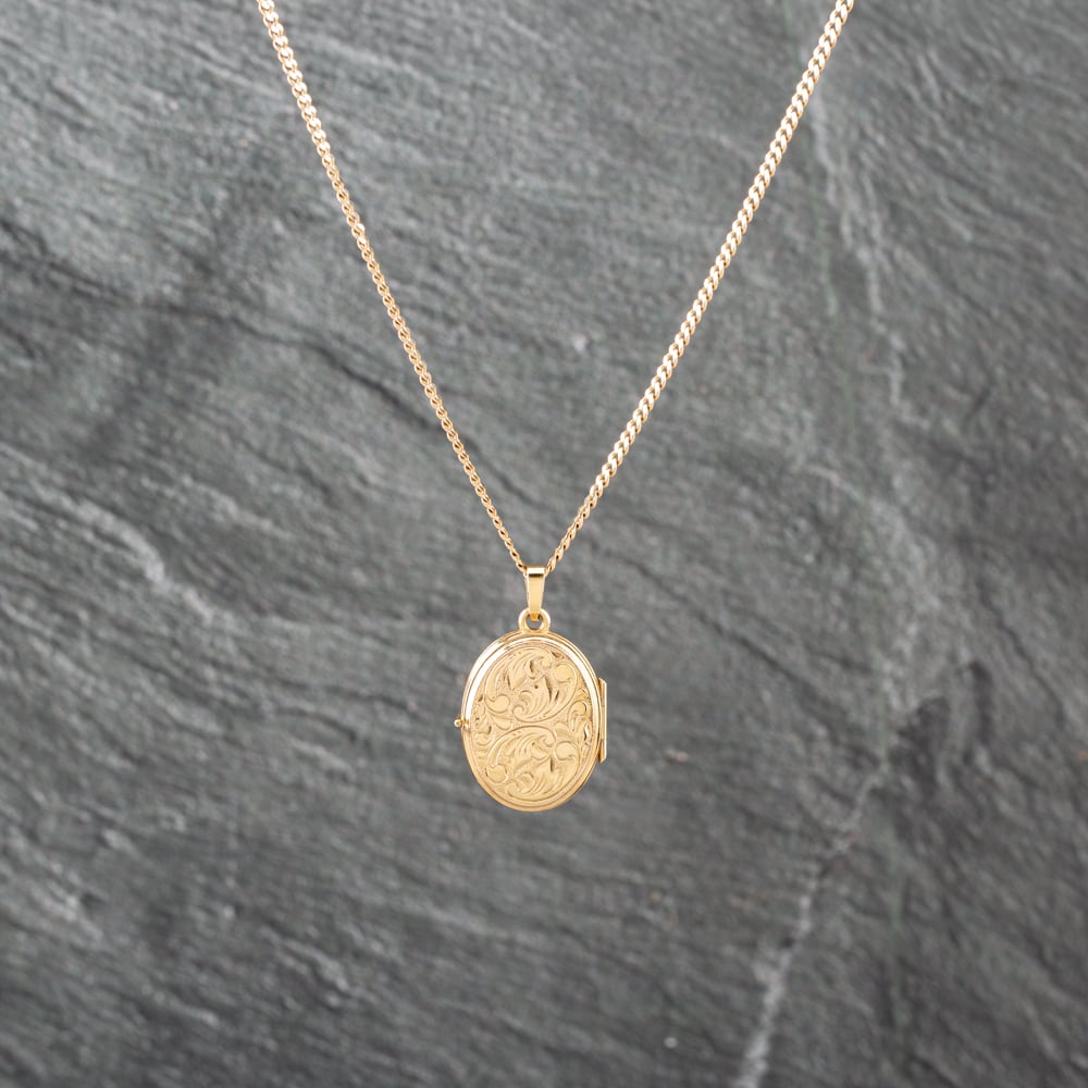 9ct Yellow Gold Oval Foliate Engraved Locket Pendant & 20 Inch Curb Chain