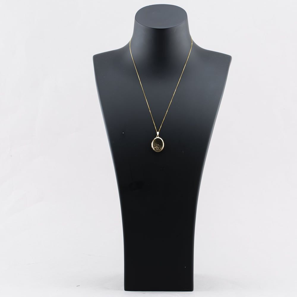 9ct Yellow Gold Oval Hand Engraved Locket Pendant & 18 Inch Curb Chain