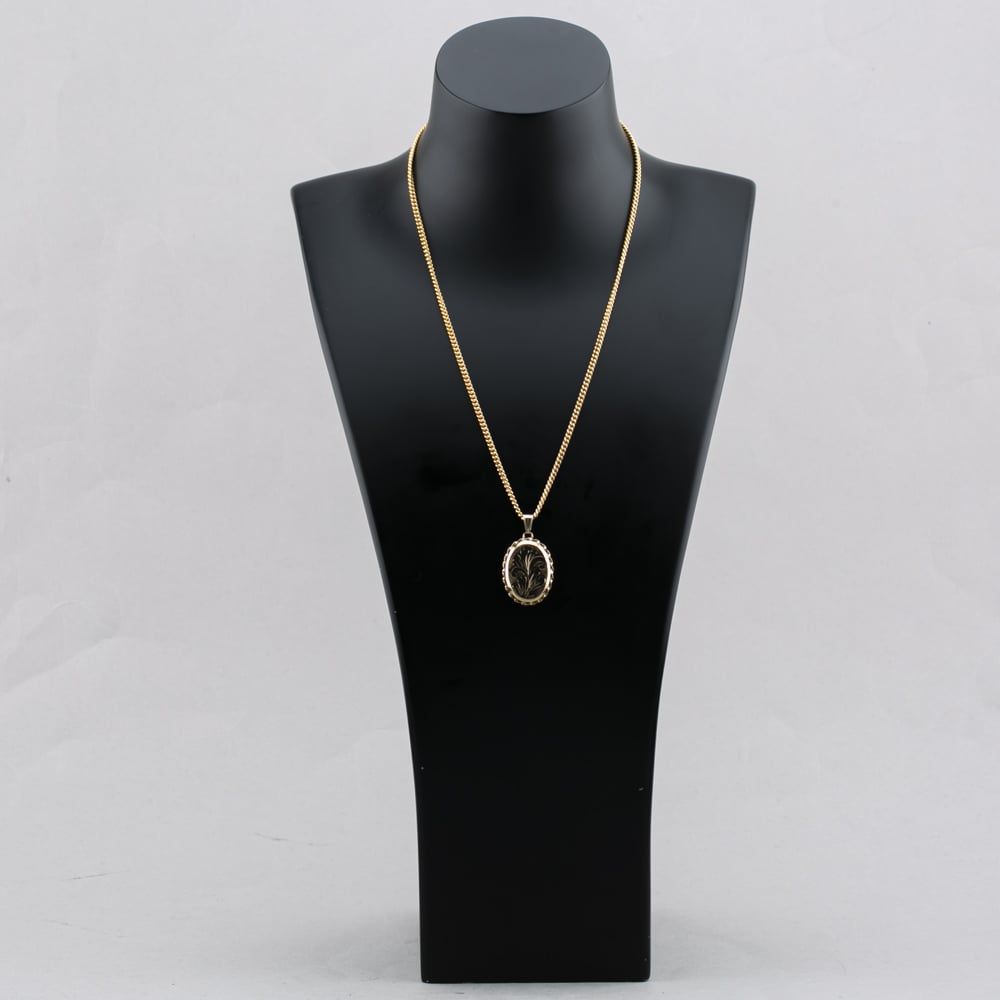 9ct Yellow Gold Oval Hand Engraved Locket Pendant & 20 Inch Curb Chain