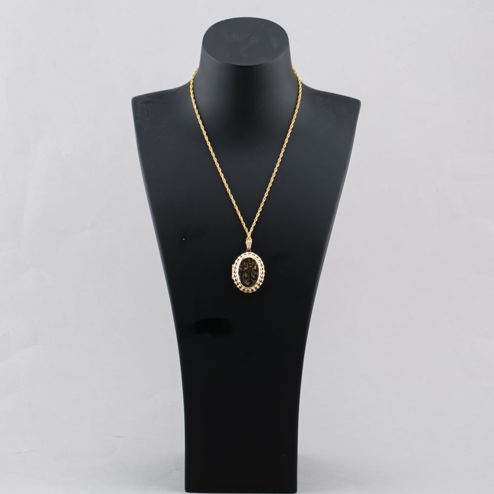 9ct Yellow Gold Oval Hand Engraved Locket Pendant & 24 Inch Curb Chain