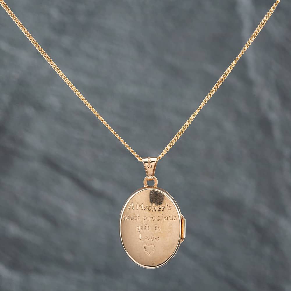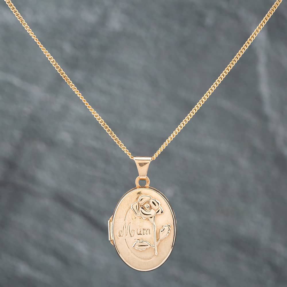 9ct Yellow Gold Oval Mum Rose Locket Pendant & 20 Inch Curb Chain
