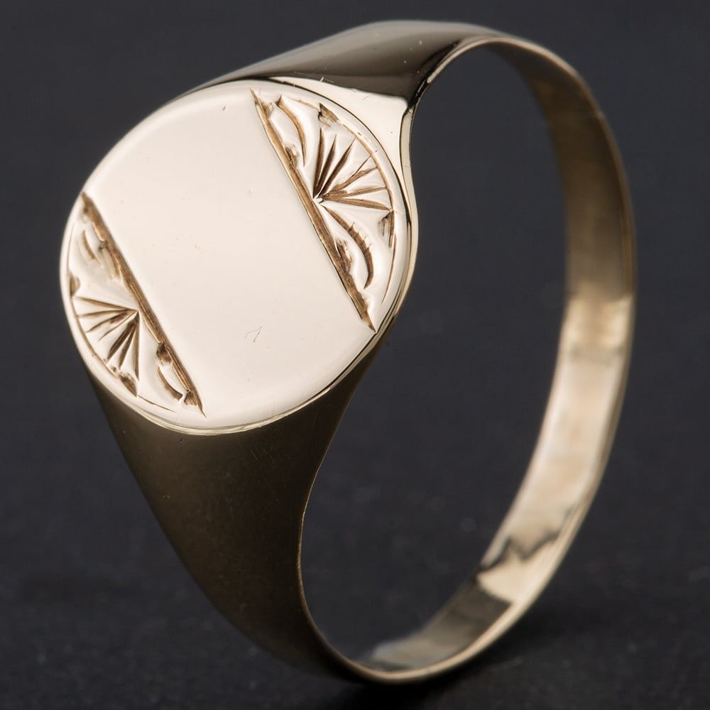 9ct Yellow Gold Gentleman's Oval Part Engraved Signet Ring