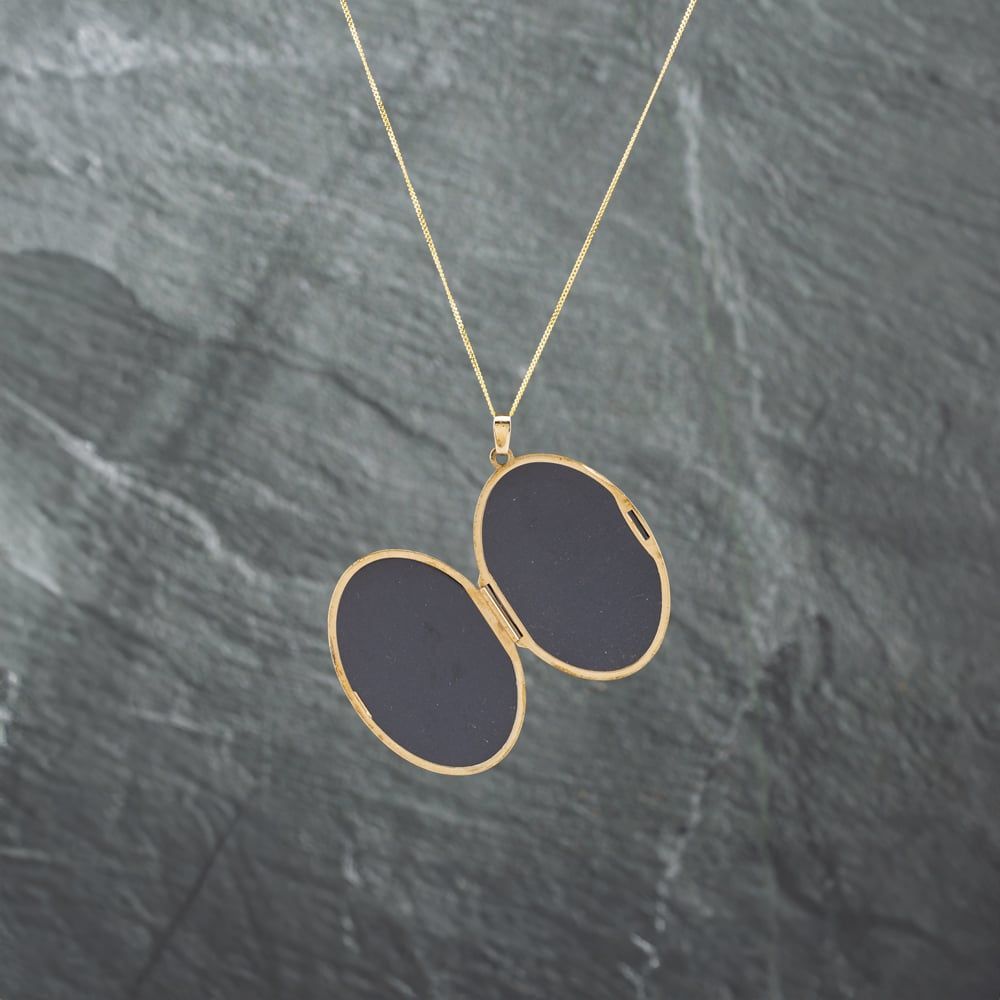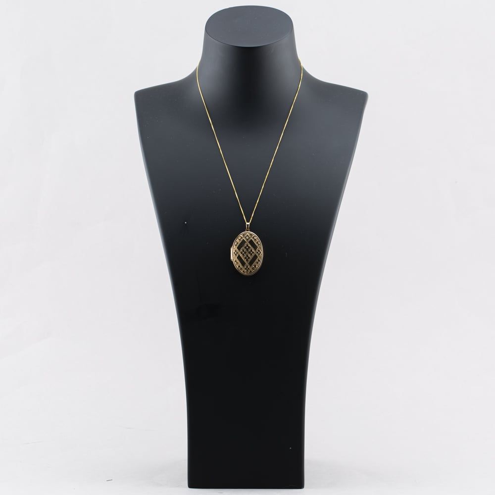 9ct Yellow Gold Oval Patterned Locket Pendant & 18 Inch Curb Chain