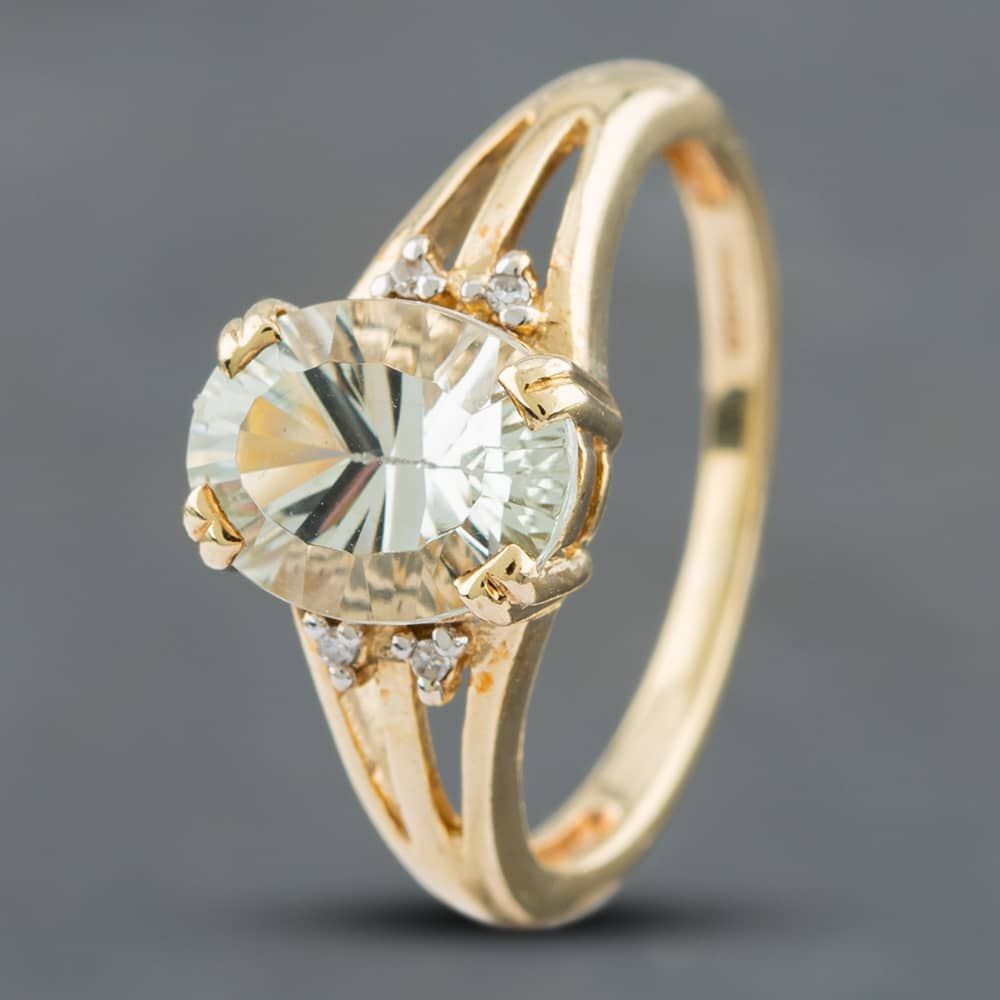 9ct Yellow Gold Oval Quartz & Diamond Set Shoulders Dress Ring