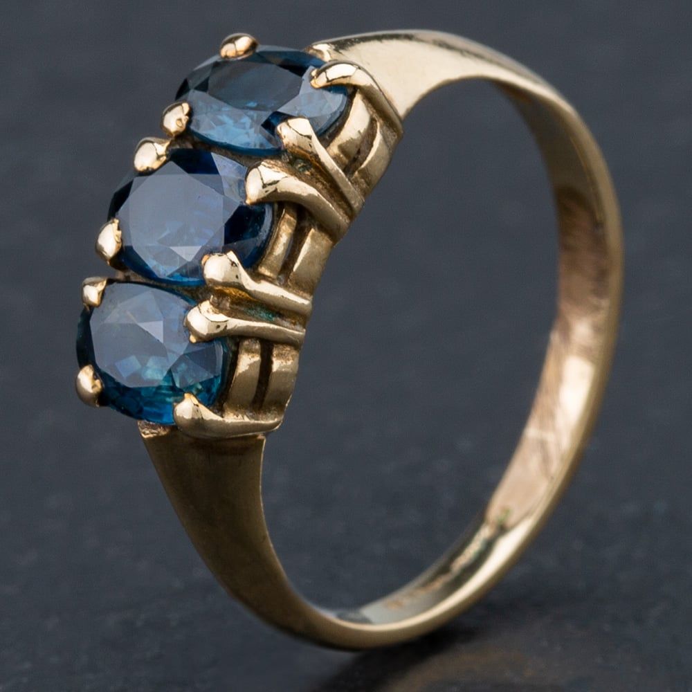 9ct Yellow Gold Oval Sapphire 3 Stone Dress Ring Claw Set