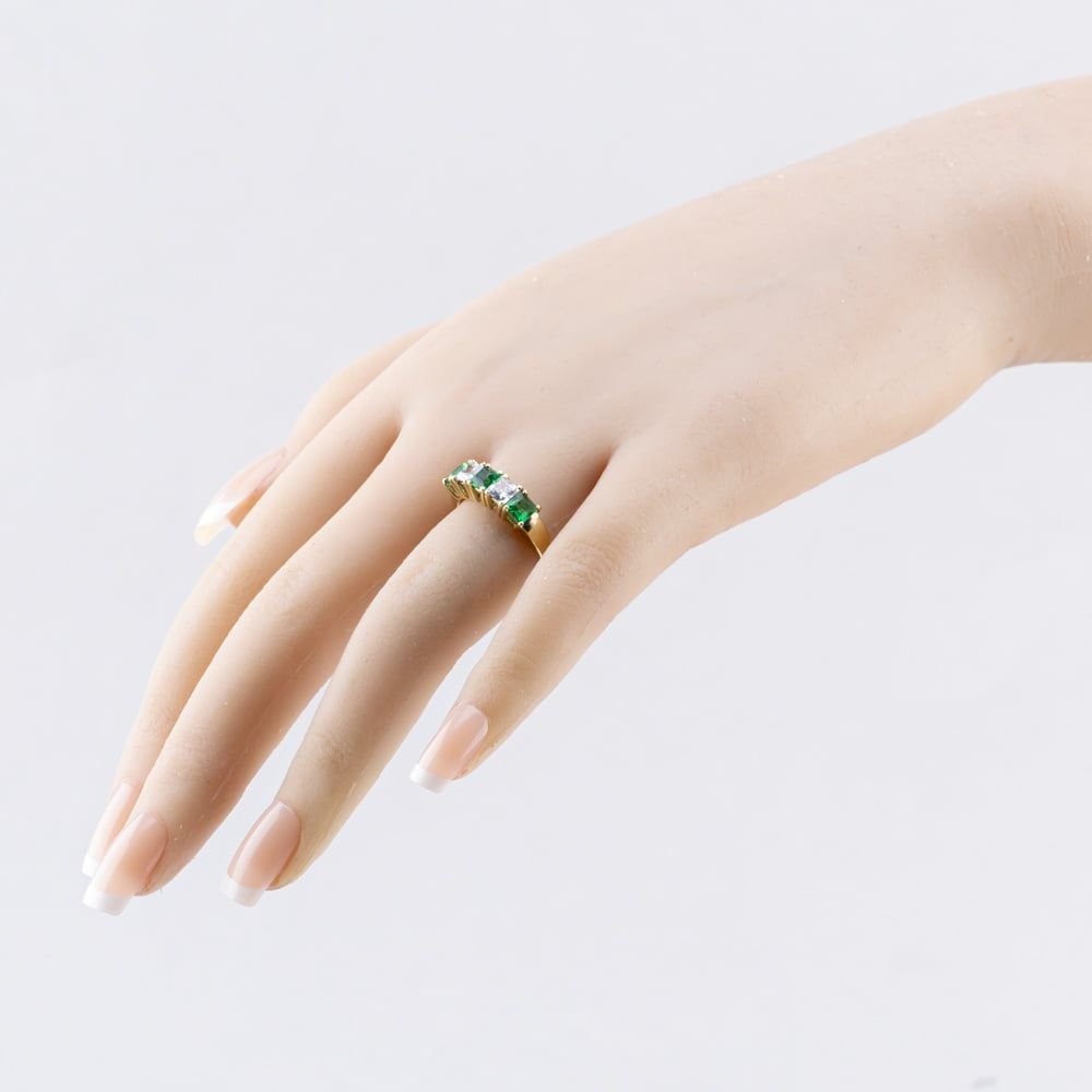 Second Hand 9ct Yellow Gold Paste Green & White Square Five Stone Ring 41103617 Second Hand 9ct Yellow Gold Paste Green & White Square Five Stone Ring 41103617