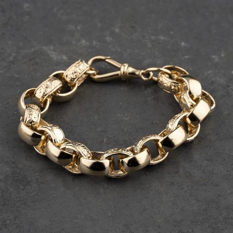 9ct Yellow Gold Patterned Link 7 Inch Belcher Chain Bracelet