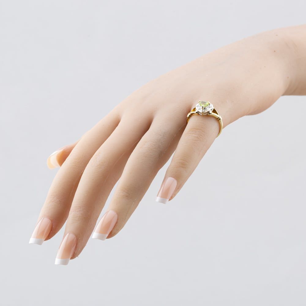9ct Yellow Gold Peridot & Diamond Heart Cluster Ring