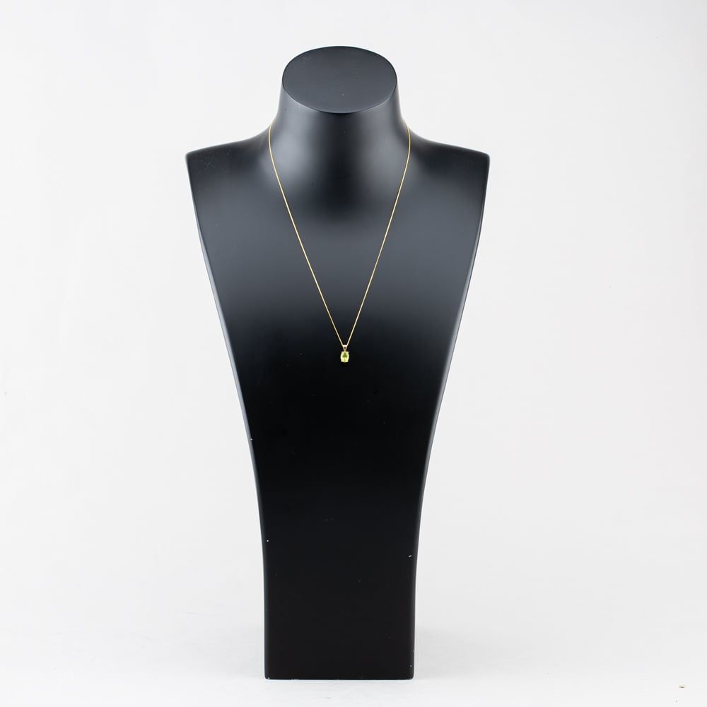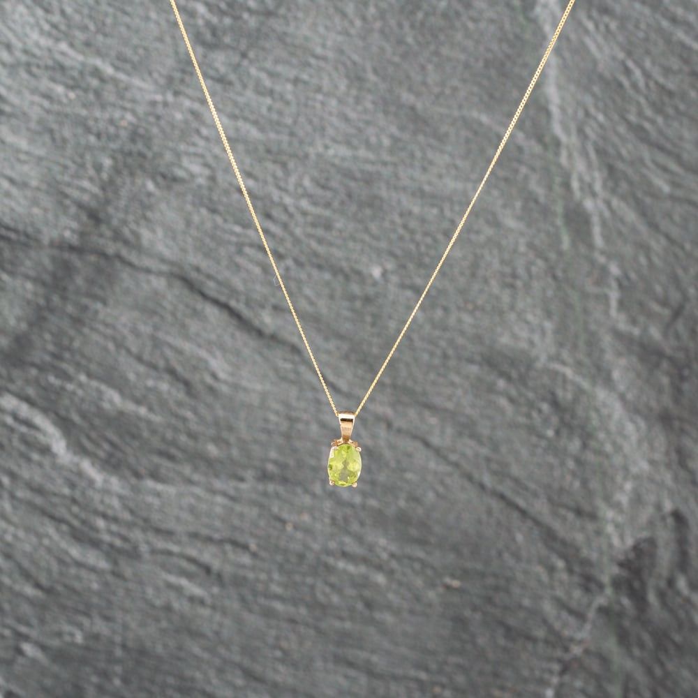 9ct Yellow Gold Peridot Oval Four Claw Set Pendant & 18 Inch Curb Chain