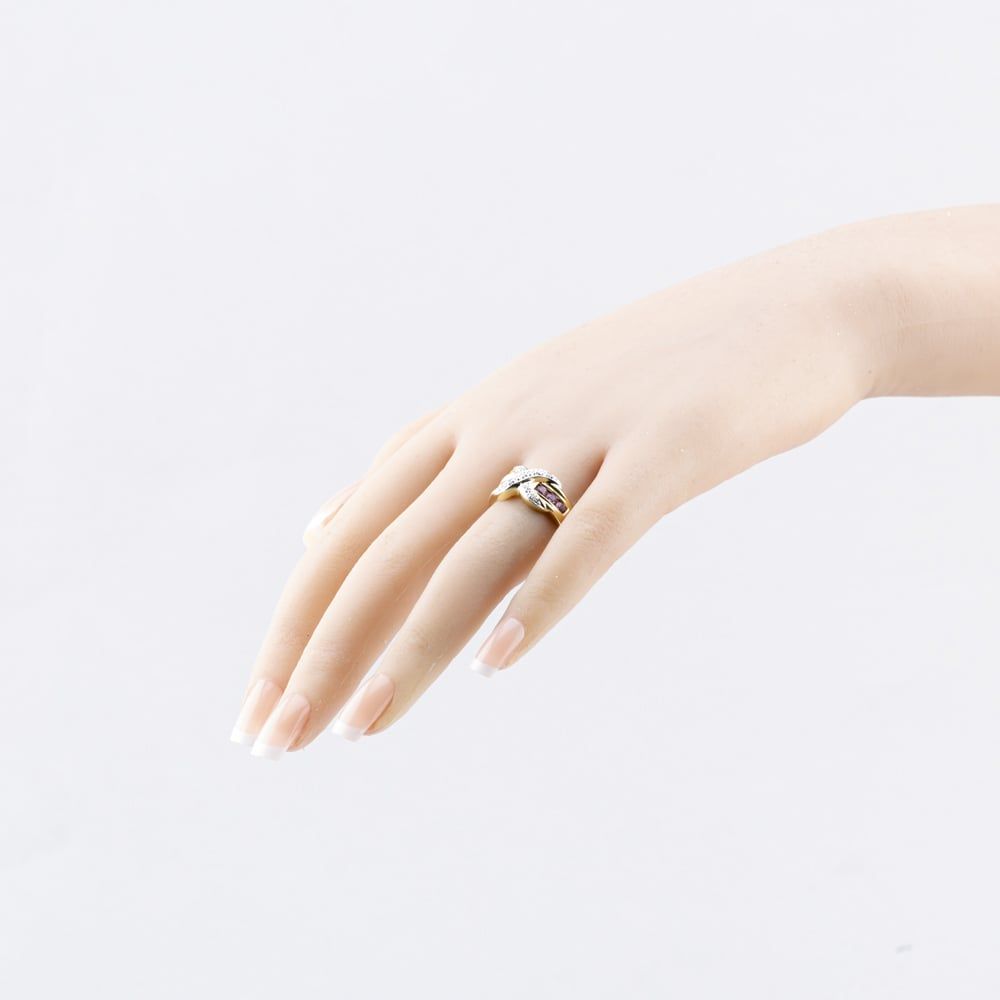 Second Hand 9ct Yellow Gold Pink Topaz & 0.05ct Diamond Crossover Ring 41482319 Second Hand 9ct Yellow Gold Pink Topaz & 0.05ct Diamond Crossover Ring 41482319