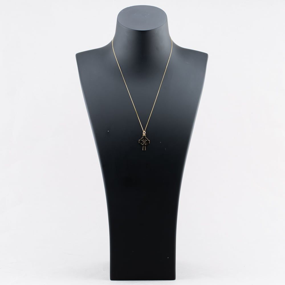 Second Hand 9ct Yellow Gold Plain Celtic Cross Pendant & 18 Inch Curb Chain 43141265
