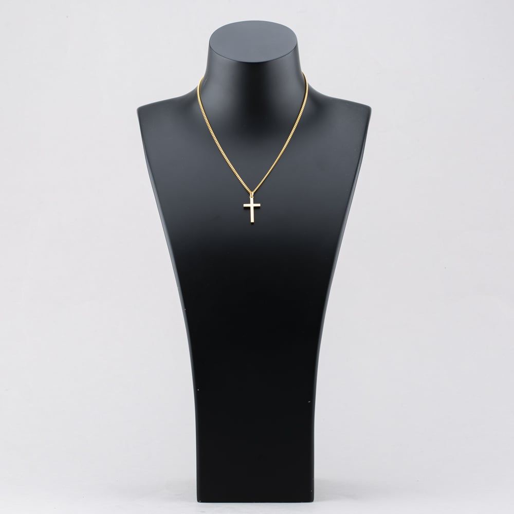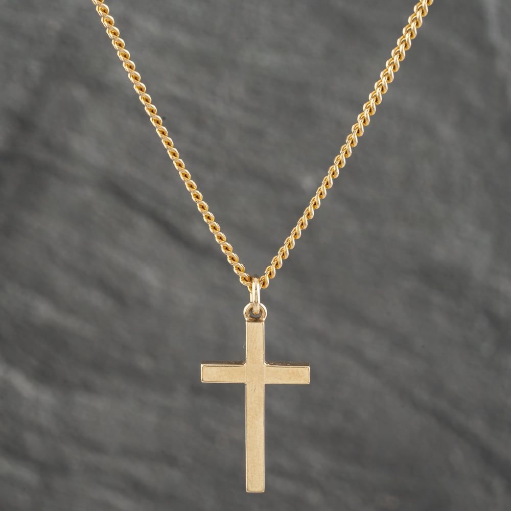9ct Yellow Gold Plain Cross Pendant & 15 Inch Curb Chain