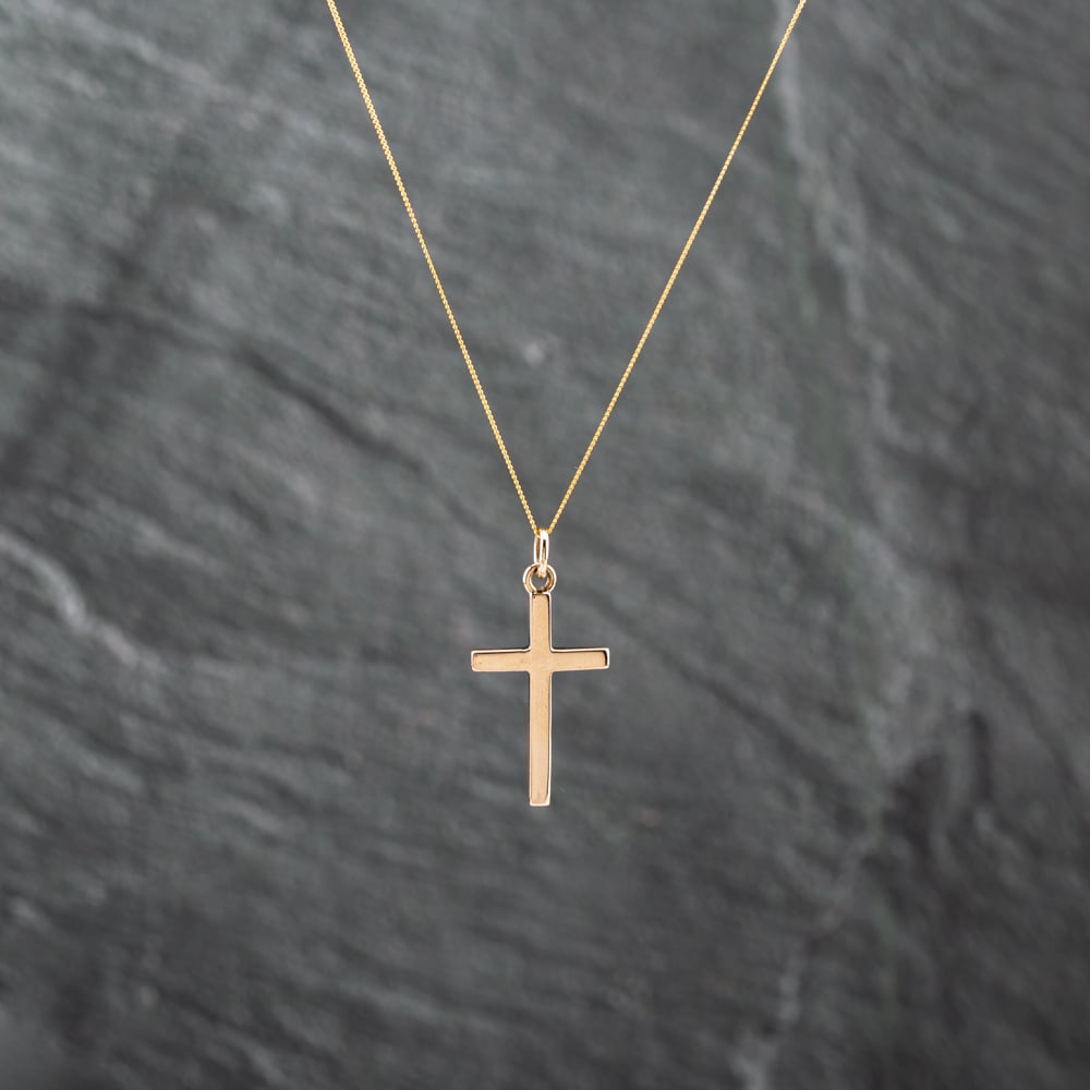 Second Hand 9ct Yellow Gold Plain Cross Pendant & 18 Inch Curb Chain 41142160 Second Hand 9ct Yellow Gold Plain Cross Pendant & 18 Inch Curb Chain 41142160