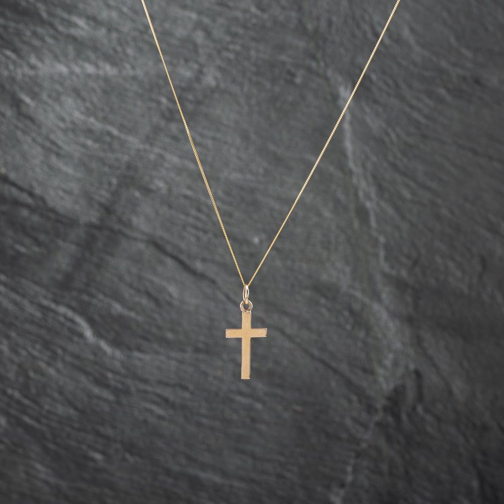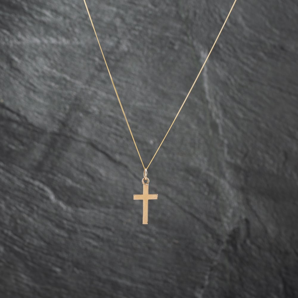 Second Hand 9ct Yellow Gold Plain Cross Pendant & 18 Inch Curb Chain 41142719 Second Hand 9ct Yellow Gold Plain Cross Pendant & 18 Inch Curb Chain 41142719