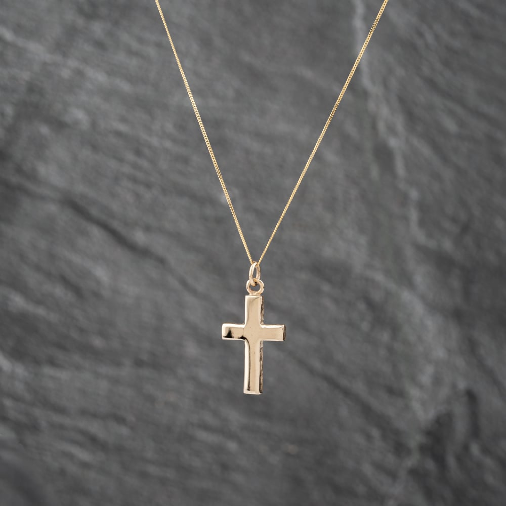 Second Hand 9ct Yellow Gold Plain Cross Pendant & 18 Inch Curb Chain 43141273 Second Hand 9ct Yellow Gold Plain Cross Pendant & 18 Inch Curb Chain 43141273