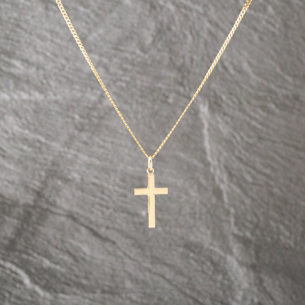 <a href="https://www.thbaker.co.uk/stores/"><b>Click here to find your <font color="6d1a42">nearest store</font></b></a>Second Handhttps://www.thbaker.co.uk/media/catalog/product/4/1/41-14-3103_model_1.jpgadd-to-cartcondition:Yesdisc_no_stock:NoYesNo41143103Second Hand41143103UnisexT H Baker Packaging12 Month WarrantyNoPendant with Chain5.3g20inchPendantCrossCurb9ct Yellow GoldGoldNo StoneNo Stone{"name":"v12_finance","text":"Or from \u00a311 per month","imageUrl":"https:\/\/www.thbaker.co.uk\/media\/nosto\/v12-finance.png"}Second Hand 9ct Yellow Gold Plain Cross Pendant & 20 Inch Curb Chain41-14-31032025-12-06 00:00:002026-03-06