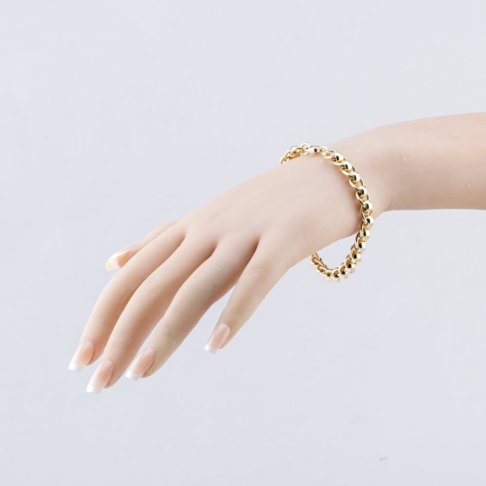 9ct Yellow Gold Roller Ball 8 Inch Curb Chain Bracelet